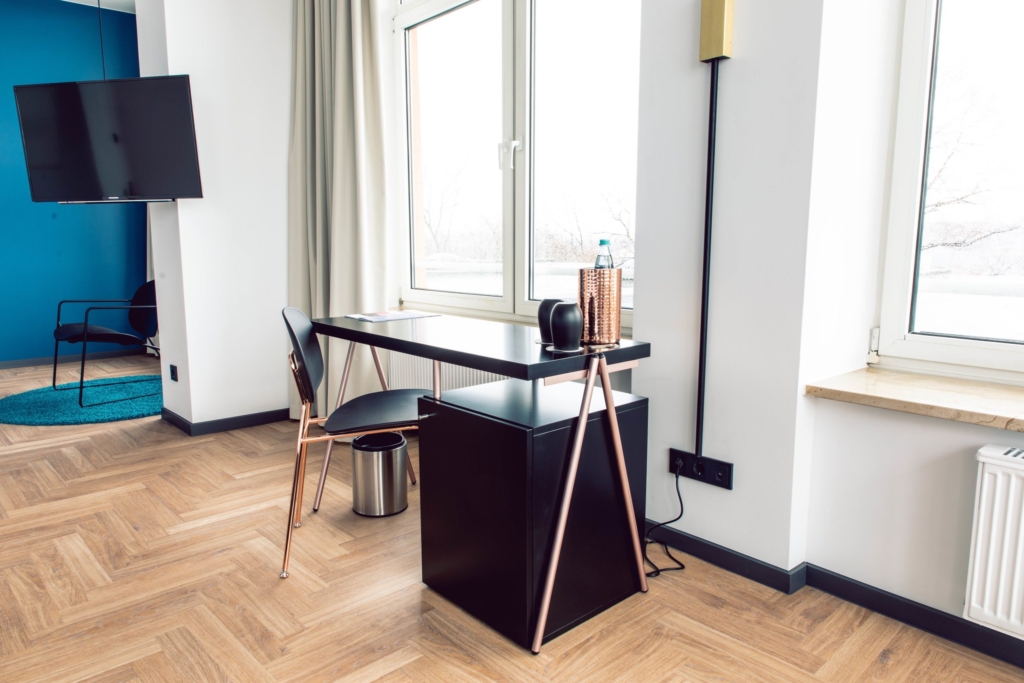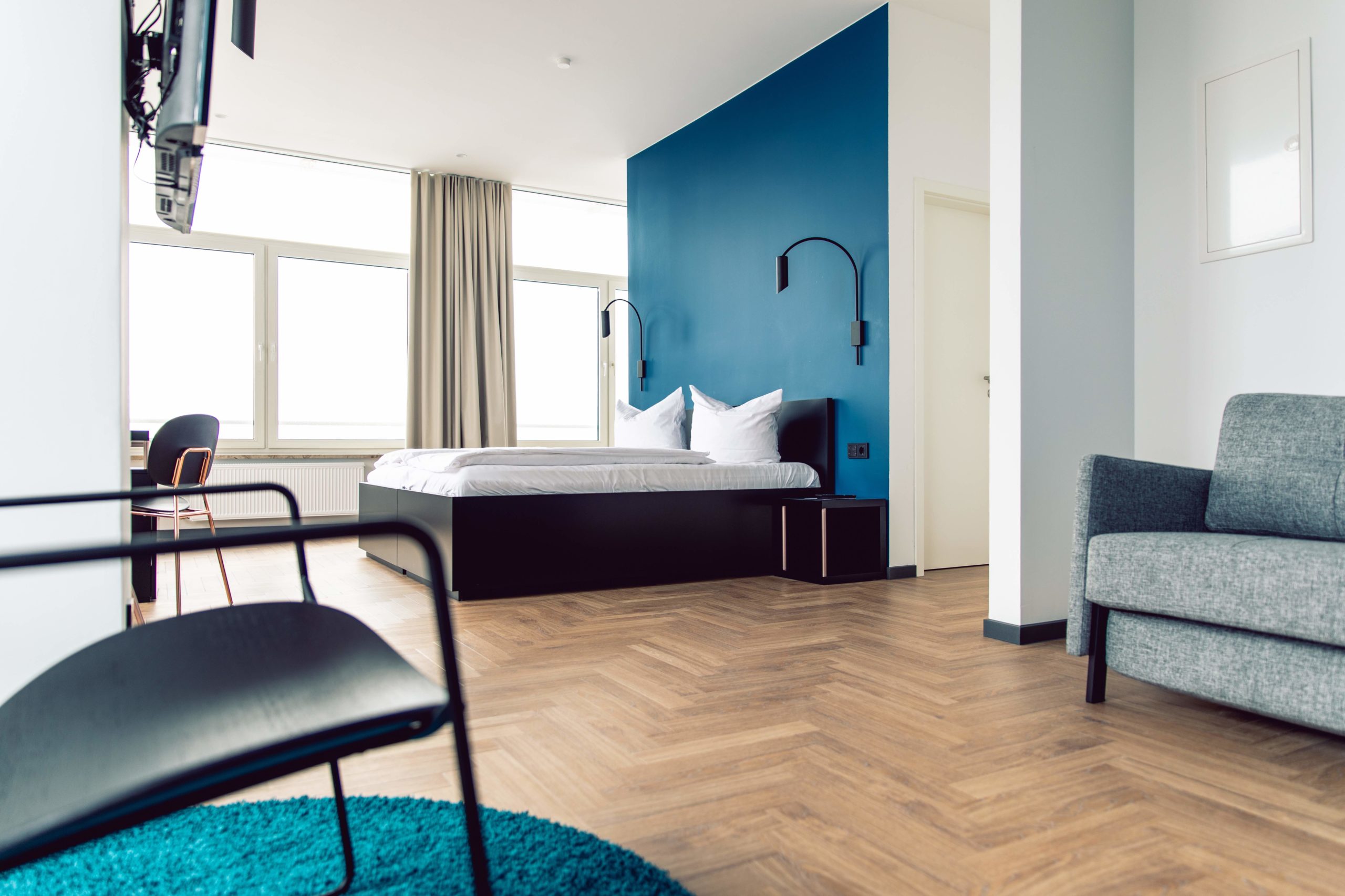 Das Schlossberg Hotel in Homburg wurde im Sinne der Nachhaltigkeit saniert. Statt den Zuschnitt von Zimmern und Funktionsräumen zu verändern, wurde das Hotel mit einigen Akzenten auf einen neuen Standard gehoben. Es wurde nichts dem Zufall überlassen. Ein neues Design durch selbstentworfene Möbel sowie moderne LED-Beleuchtung, geben dem Hotel einen Touch der auch in den kommenden Jahrzehnten für ein Wohlgefühl sorgt. So wurden auch nur ausgewählte besondere Farben genommen. Die Hotelzimmer wurden dementsprechend klimatisiert.